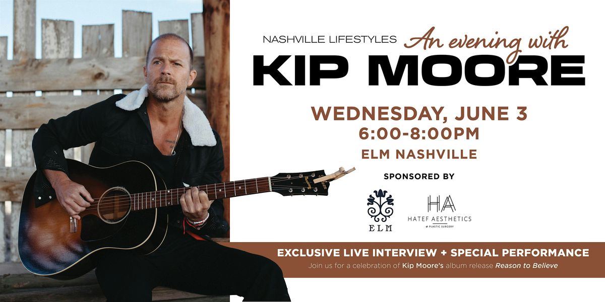 An Evening with Kip Moore is sponsored by ELM Nashville and Hatef Aesthetics.