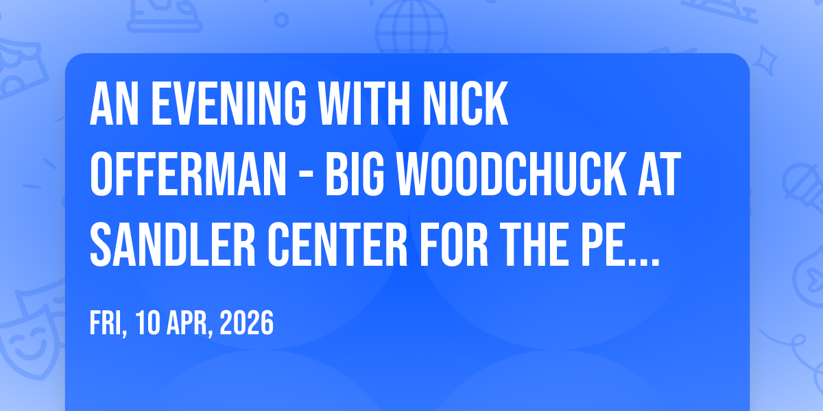 π Welcome to An Evening with Nick Offerman - Big Woodchuck at Sandler Center for the Performing Arts, where the impossible becomes possible and dreams take flight! ποΈ Join us at Sandler Center for the Performing Arts in the heart of Virginia Beach, VA for an event that will redefine your expectations. π On April 10th, 2026 at 07:00 PM, witness the transformation of space and time into something truly magical. β¨ It's a curated experience combining the best of innovation, entertainment, and community spirit, creating moments that will be remembered for years to come. Whether you're a first-time visitor or a seasoned enthusiast, prepare to be amazed. π Book now to ensure your place in this unforgettable experience!