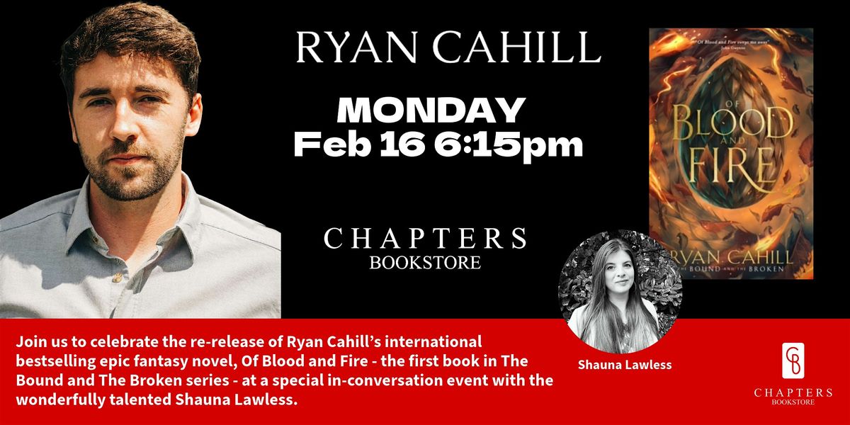 Join us to celebrate the re-release of Ryan Cahill’s international bestselling epic fantasy novel, Of Blood and Fire - the first book in The Bound and The Broken series - at a special in-conversation event with the wonderfully talented Shauna Lawless.