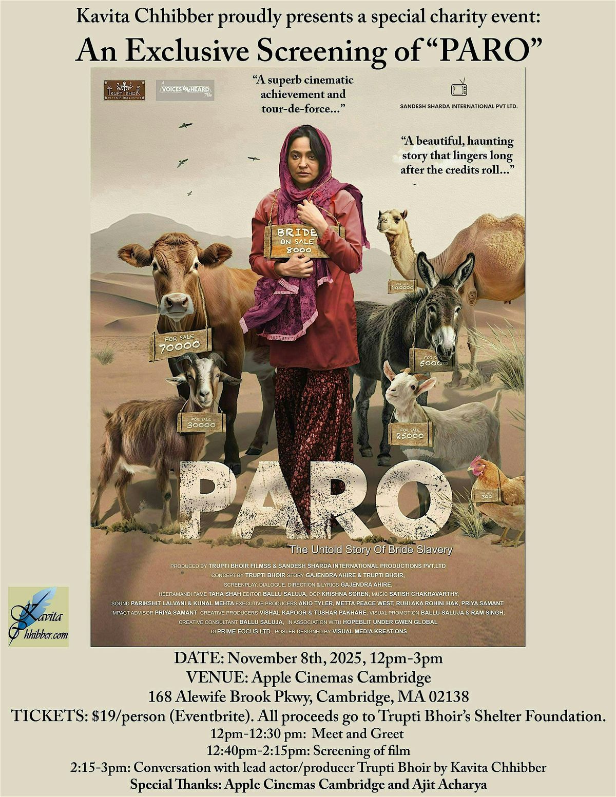 An Exclusive Boston Screening of "PARO" including meet/greet with lead actor/producer Trupti Bhoir (for charity)