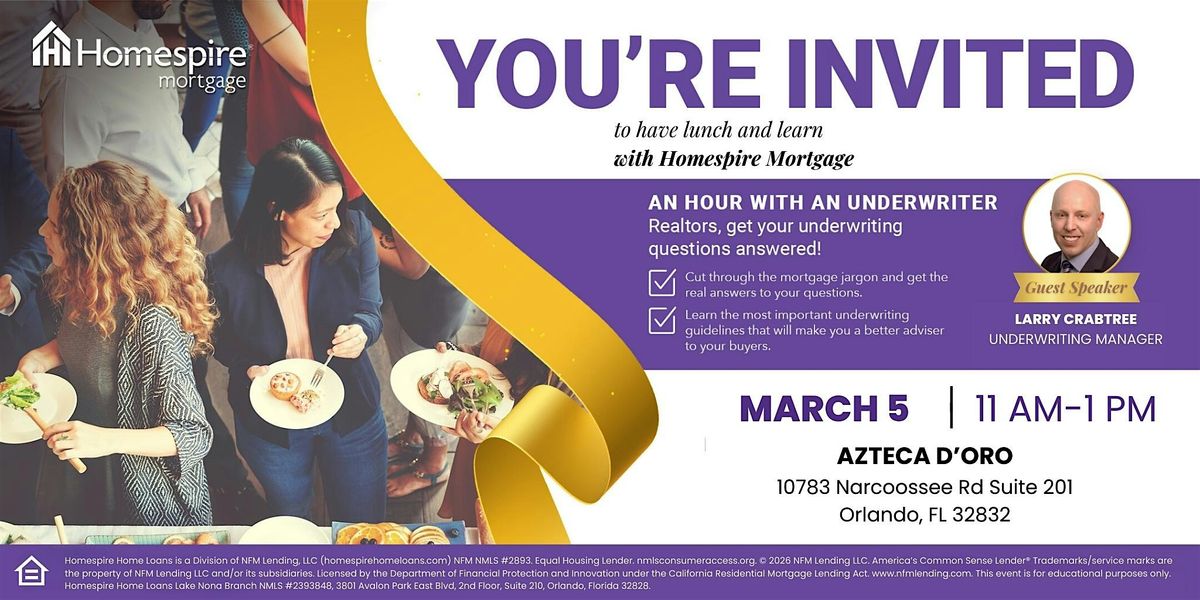Join us for a special Lunch & Learn event presented by Homespire Branch Manager, Juan Farias, and featuring Homespire Underwriting Manager, Larry Crabtree.