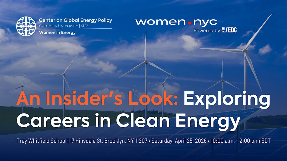 You are invited to join An Insider’s Look: Exploring Careers in Clean Energy organized by the Center on Global Energy Policy at Columbia University’s Women in Energy initiative, Women.NYC and NYC Economic Development Corporation.