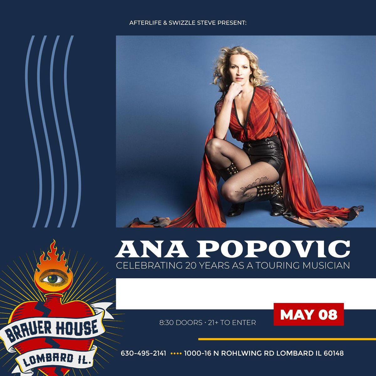 Today, you’ll find Popovic in a select group of excellent modern blues guitar players. One reason could be the fact that she’s always willing to work a little harder and travel a little further to hone her craft. That dedication has resulted in twelve albums, two DVDs and six nationwide Experience Hendrix tours. She's called “one helluva a guitar-player” by Bruce Springsteen and nominated for seven Blues Music Awards nominations. Ana has appeared on the covers of Vintage Guitar and Guitar Player magazine. Her albums 'Can You Stand The Heat' and 'Unconditional' were USA Today Picks-Of-The-Week and featured on NPR Weekend Edition, who praised her "Fiery technique on the Stratocaster". Nearly all of Ana's albums reached the top of the Billboard Blues Charts. She and her six-piece band have toured tirelessly, sharing stages with B.B. King, Buddy Guy, Jeff Beck, Joe Bonamassa and many others.
