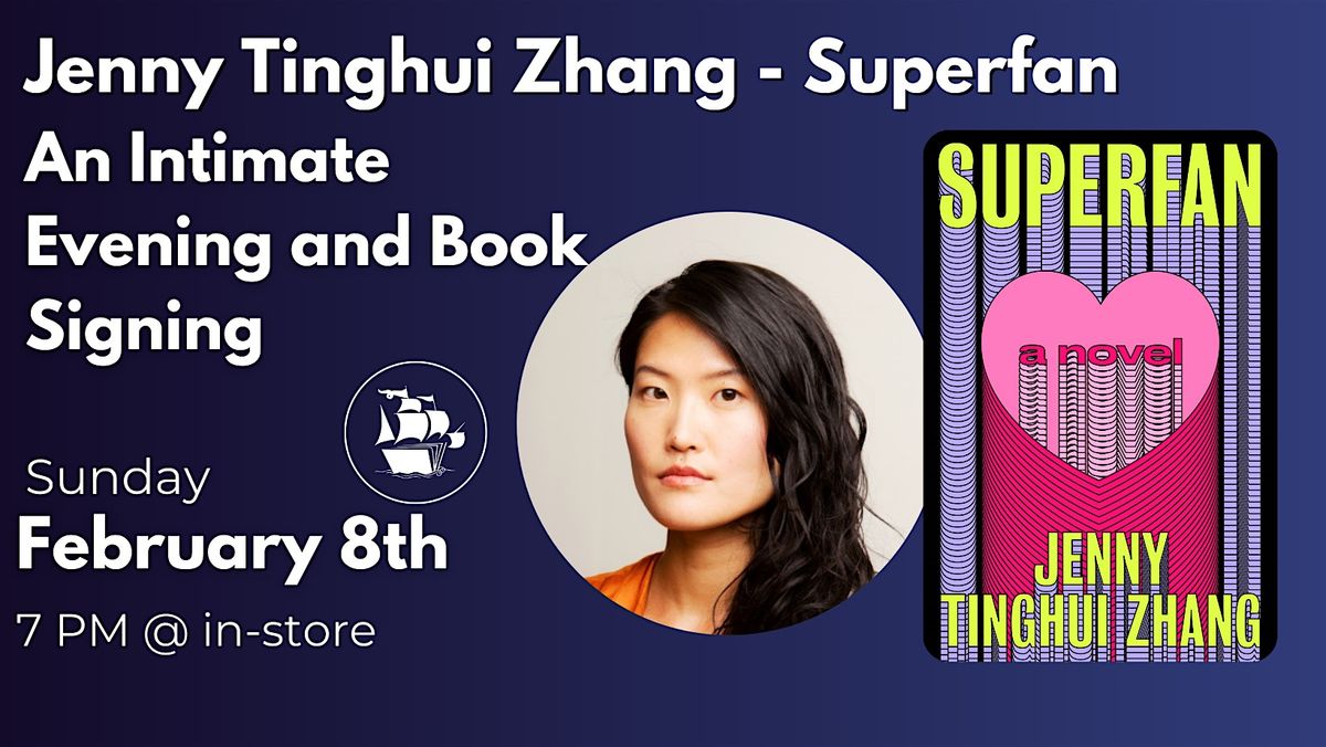 Join us for a cozy, in-person event featuring the incredible Jenny Tinghui Zhang as she discusses her new book Superfan. Dive deep into her world through stories, conversation, and a chance to connect with fellow fans. It’s all about good vibes, great company, and unforgettable moments. Don’t miss out on this special night at Rediscovered Books!