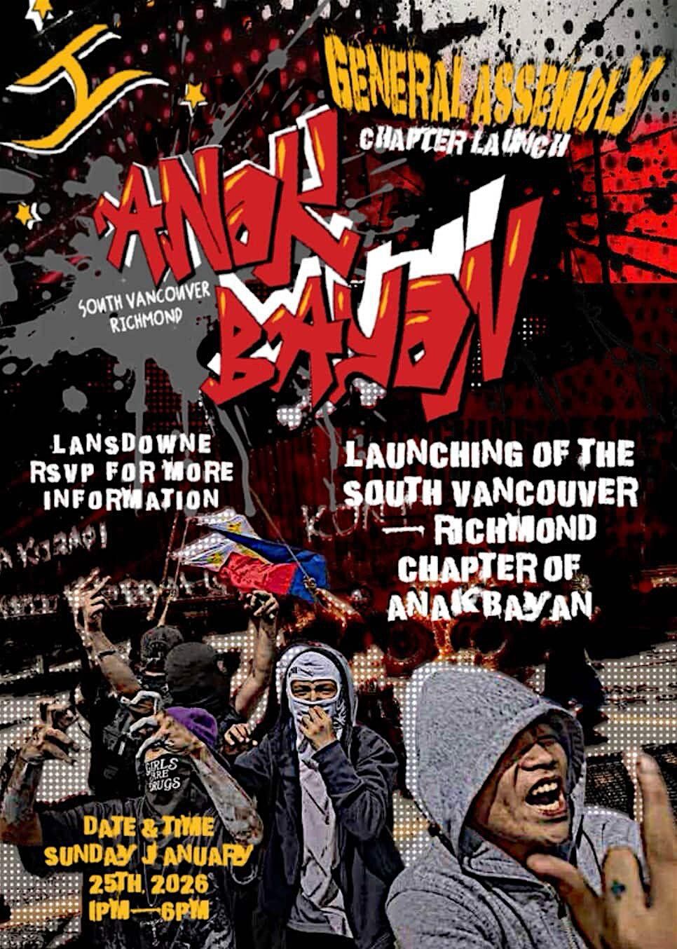 Anakbayan South Van-Richmond is launching as a chapter after organizing youth, students, and workers all of 2025! Join us in celebration <3About this Event