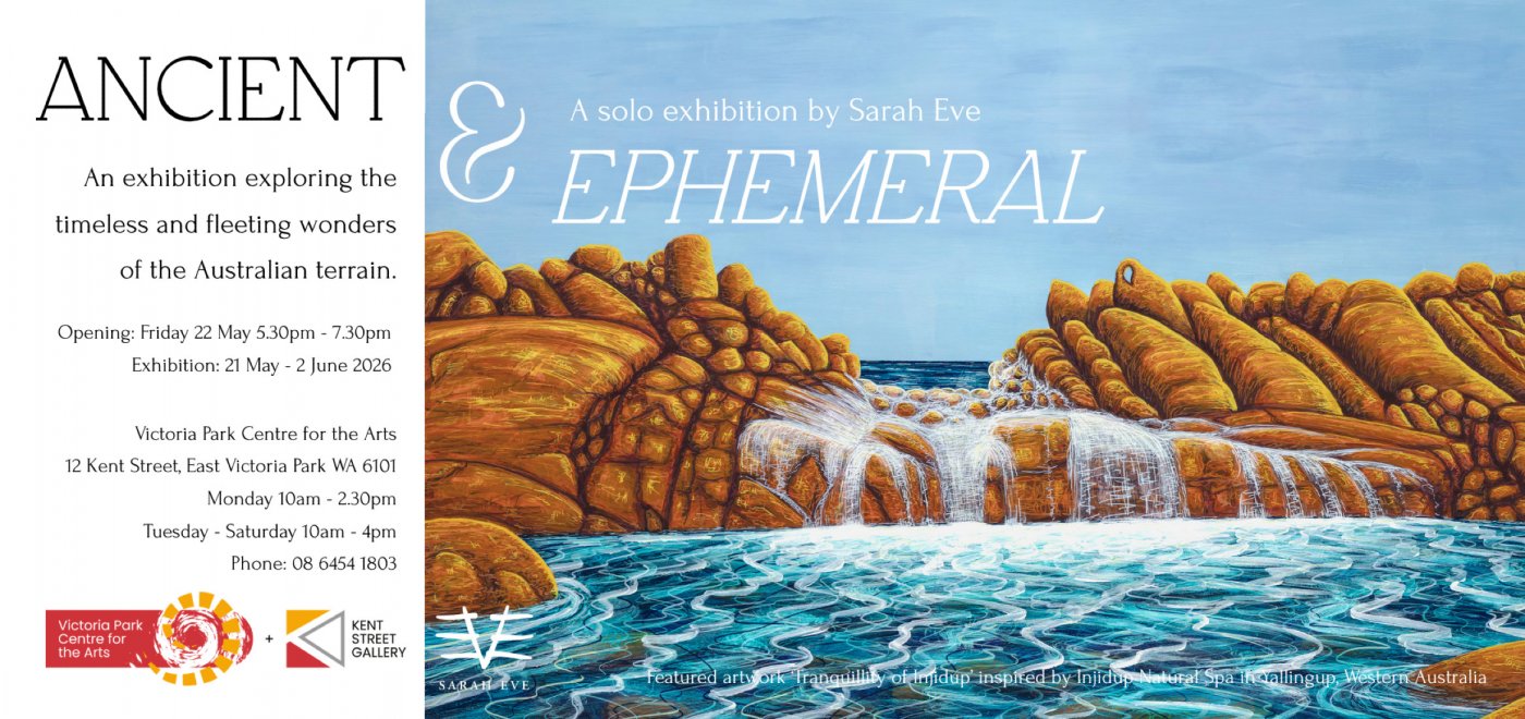 A new solo exhibition by Western Australian artist Sarah Eve, Ancient & Ephemeral, will open at Victoria Park Centre for the Arts this May, inviting audiences to reflect on the enduring power of the Australian landscape and our fleeting place within it.