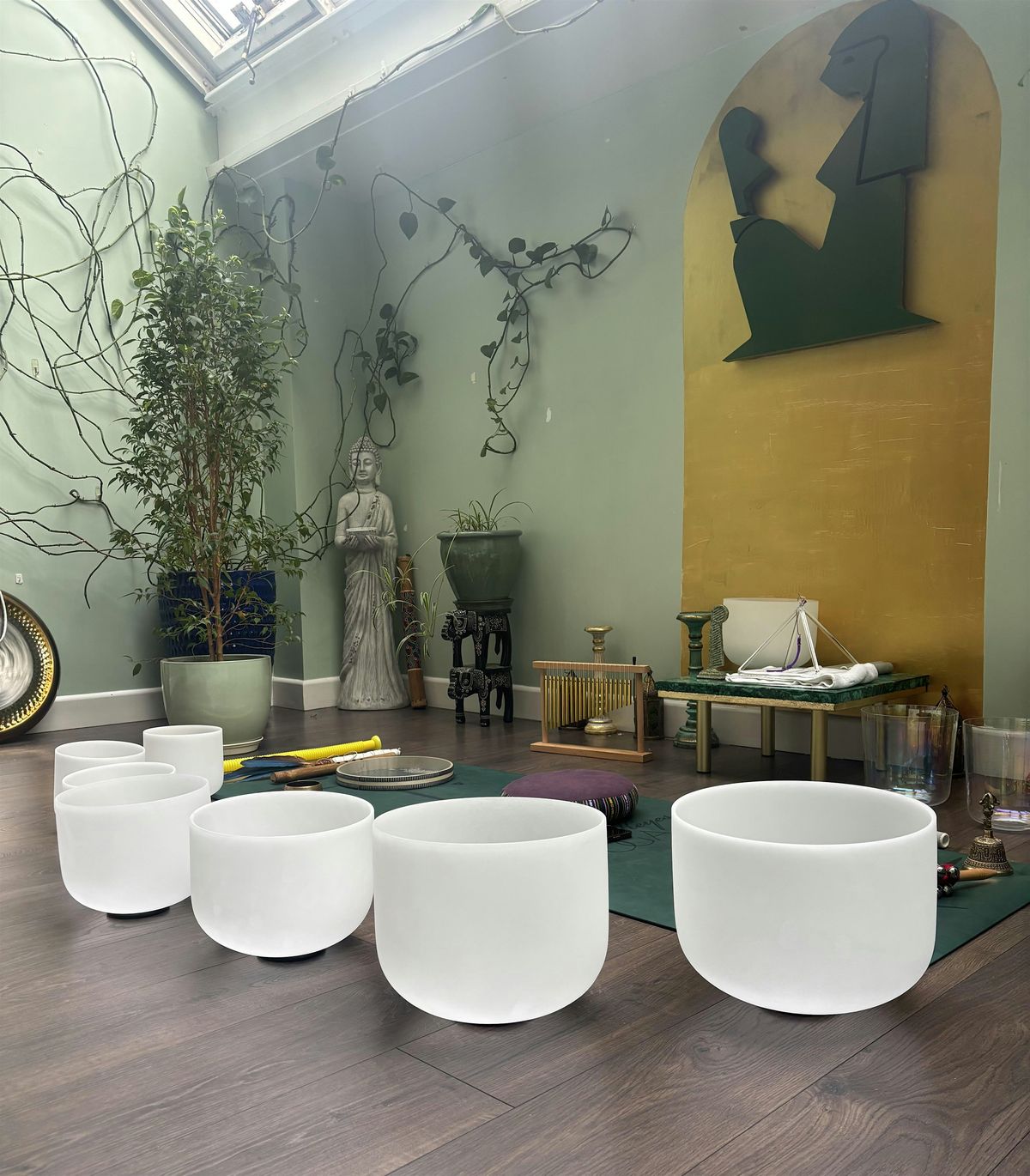 With clear and frosted Crystal bowls, Chimes, Flutes, 432Hz tuning forks, Bells, Crystal pyramids, Gong, Rainstick and more, bask in the healing frequencies to dissolve chronic stress, insomnia, mental fog, physical and psychological pain, plus so much more through this transformative sound healing. 𓈗