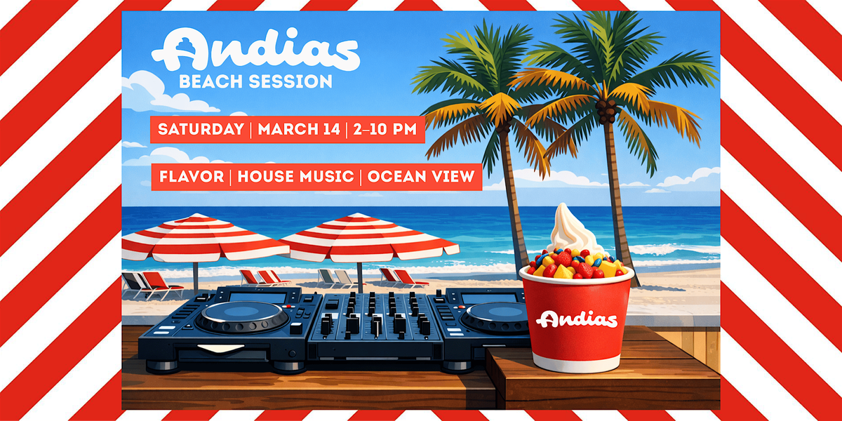 Join us at Andias for 8 hours of beachfront house music and elevated beach flavors — frozen yogurt, açaí bowls, protein shakes, healthy juices, and cold beer.