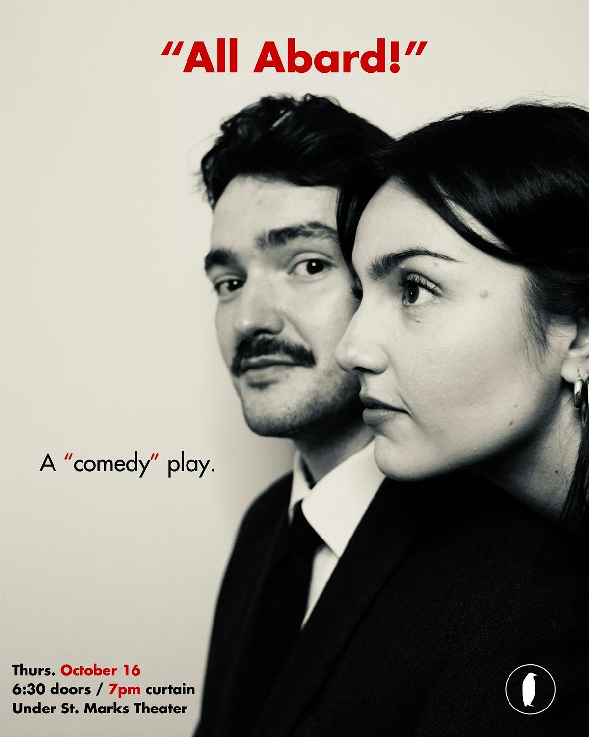 "All Abard!" is an original meta tragicomedy play about two comedians in the 1960s who move to New York to chase their dreams of living lives they won't regret living, but when love gets in the way, what will they choose?