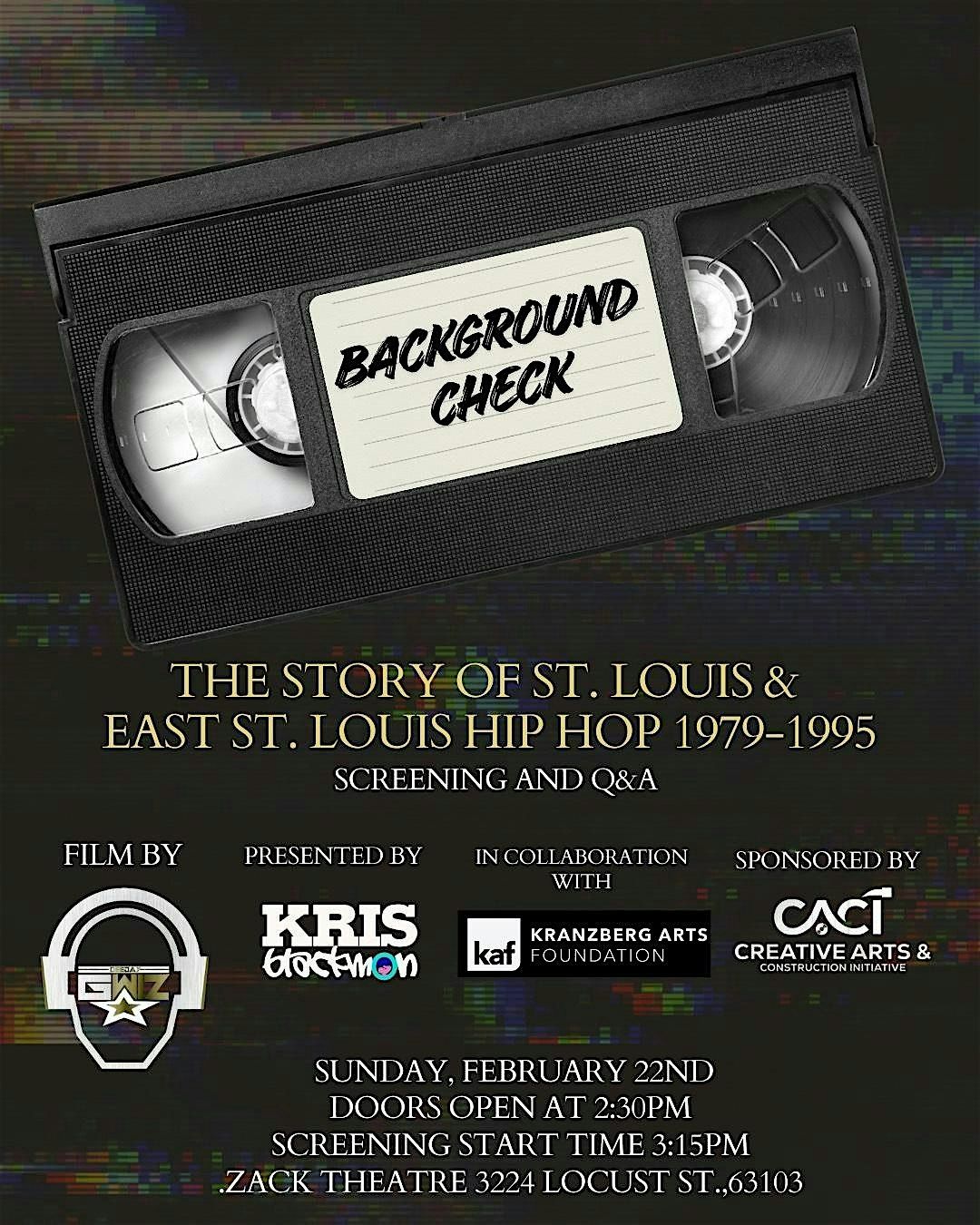 Kris Blackmon Presents a special screening and Q&A panel of G Wiz's film, "Background Check": The Story of St.Louis & East St.Louis Hip-Hop 1979-1995.