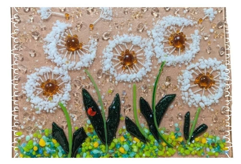 This 2.5 hour class is a simple design even for a beginner. The instructor will guide you on a few simple cuts and show you how to place and adhere the glass, frit and stringers. Easy enough for a beginner and rated a 5 or a 6 for the length of time needed to complete . We will design on a pre-cut clear base background with minimal cutting involved.