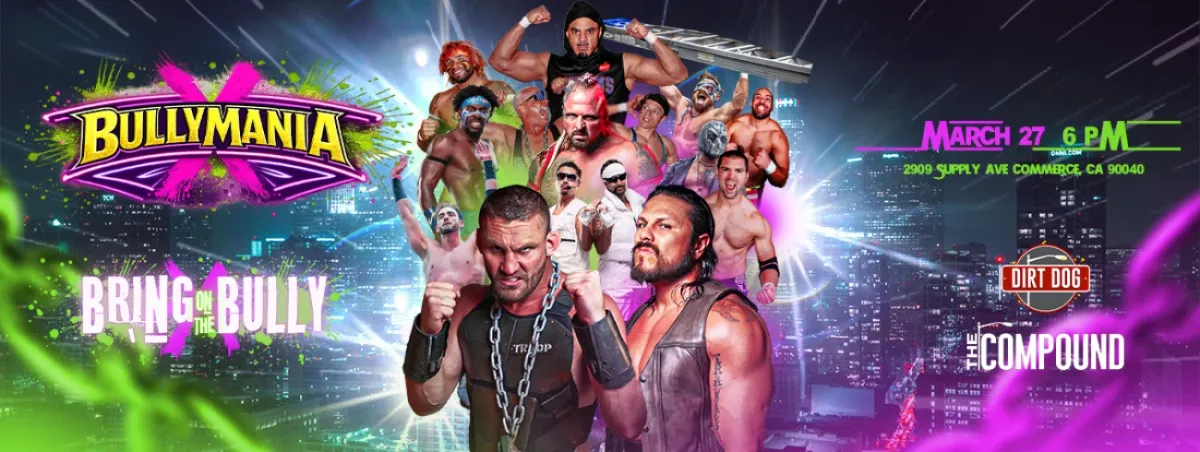 BulletProof Troop vs Bad Dude TitoSlice Boogie vs Mystery Opponent (WWE TV)LiveDanger vs Delerium ("Bully Rules" Rematch)Anthony Idol vs Slick Sensations (2vs1 "Underdog Match")Alec Thomas vs Mathias Honest John vs Inferno AbdulDoors Open 5pmShow Starts 6pmAfterParty 10pm-12amAll Ages WelcomeDress to Impress (Nightclub Attire Recommended)(Card Subject to Change)