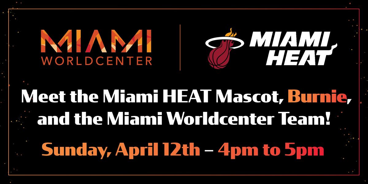 Whether you’re a Miami HEAT fan and heading to the Game or Visiting The Miami Worldcenter stop by between 3:45pm and 5:00pm for Pics and Meet & Greets with Burnie and the Miami Worldcenter Brand Ambassador Team...