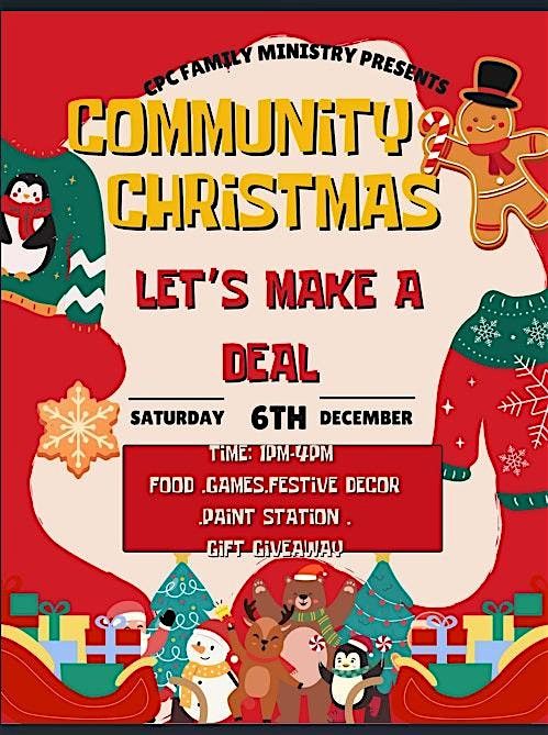 Get ready to spread some holiday cheer at our in-person "Community Christmas" Toy Giveaway! It's all about bringing smiles and joy to kids in the neighborhood. Swing by, pick out fun toys for your little ones, and enjoy a festive atmosphere filled with warmth and laughter. Don't miss this chance to make the season bright for your family! Food /crafts/games/paint station and Holiday character's to take pictures with :)