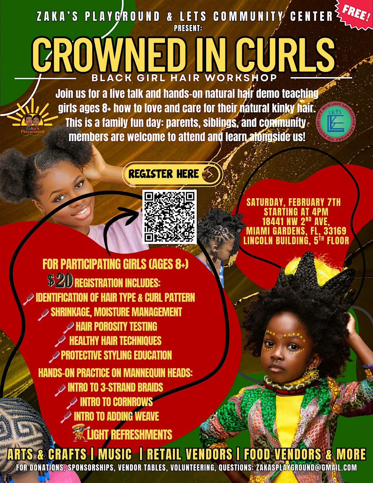 This is a FREE event! If you want your child to participate in the hands-on demo curated by a natural hair expert, see below: