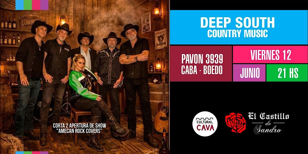 ¡El verdadero espíritu del country llega a Boedo! Este 12 de junio a las 21 hs, prepárate para un viaje sonoro directo al corazón de los Estados Unidos con Deep South Country Music. Vive una noche auténtica en el mítico El Castillo de Sandro, donde el folk, el bluegrass y el outlaw country resonarán con la fuerza de una banda que lleva el género en la sangre.