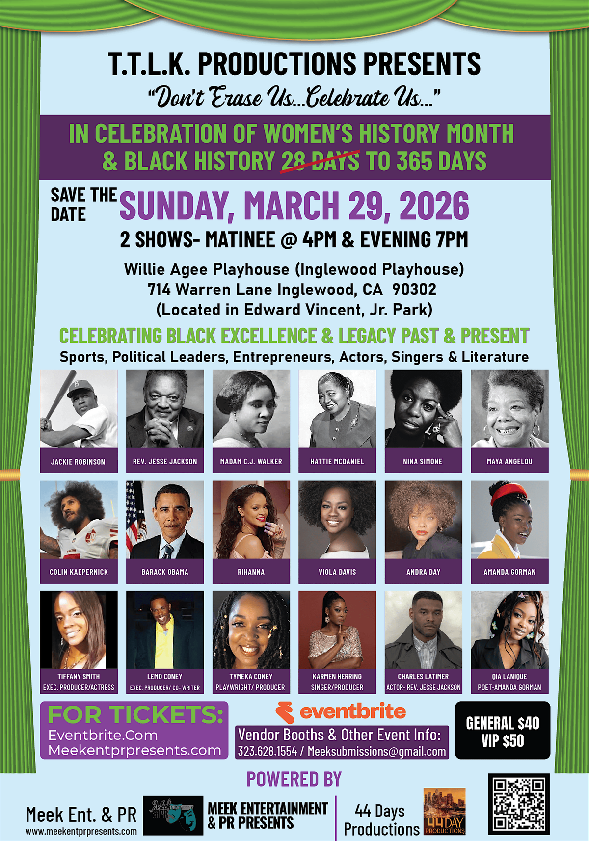 Join us as we honor Black Excellence & Legacy—Past & Present w/a continuation of Black History & Women's History in our Stage production~About this Event