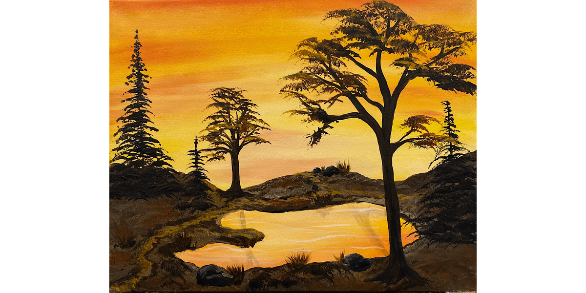 "Evening Glow" - Sat Jan 31, 7PM - Sip N Paint with us as we create this warm forest scene together. No experience needed!