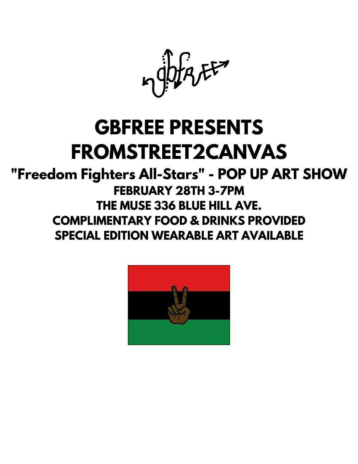 Join GBfree and friends for a special FromStreet2Canvas Black History Month Pop-Up art show celebrating the "Freedom Fighters All-Stars" collection!