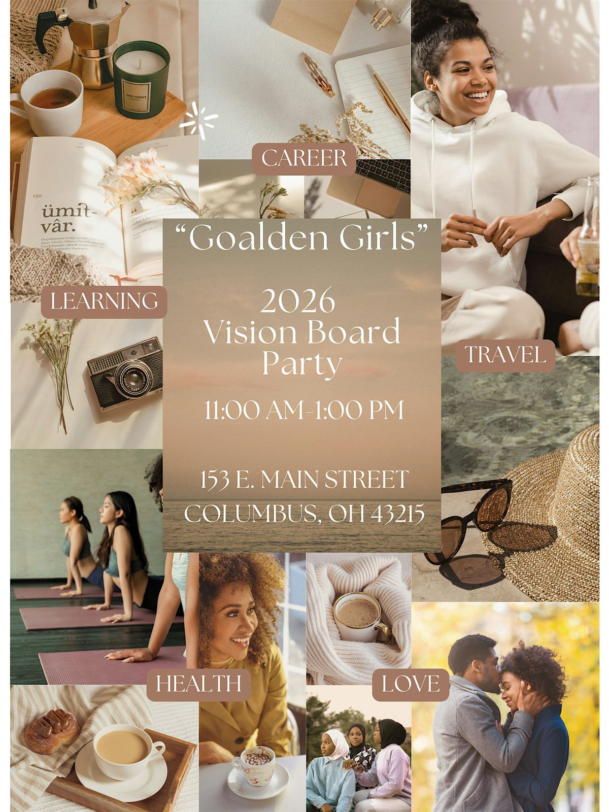 Ready to make 2026 your best year yet? Join us for a brunch of fellowship, friends and fun for the "Goalden Girl" Vision Board Party! Bring your creativity, dreams, and good vibes as we cut, paste, and plan our goals together. It's all about inspiring each other and setting a clear path to success. Don’t miss out on a fun, chill night of motivation and vision-crafting!