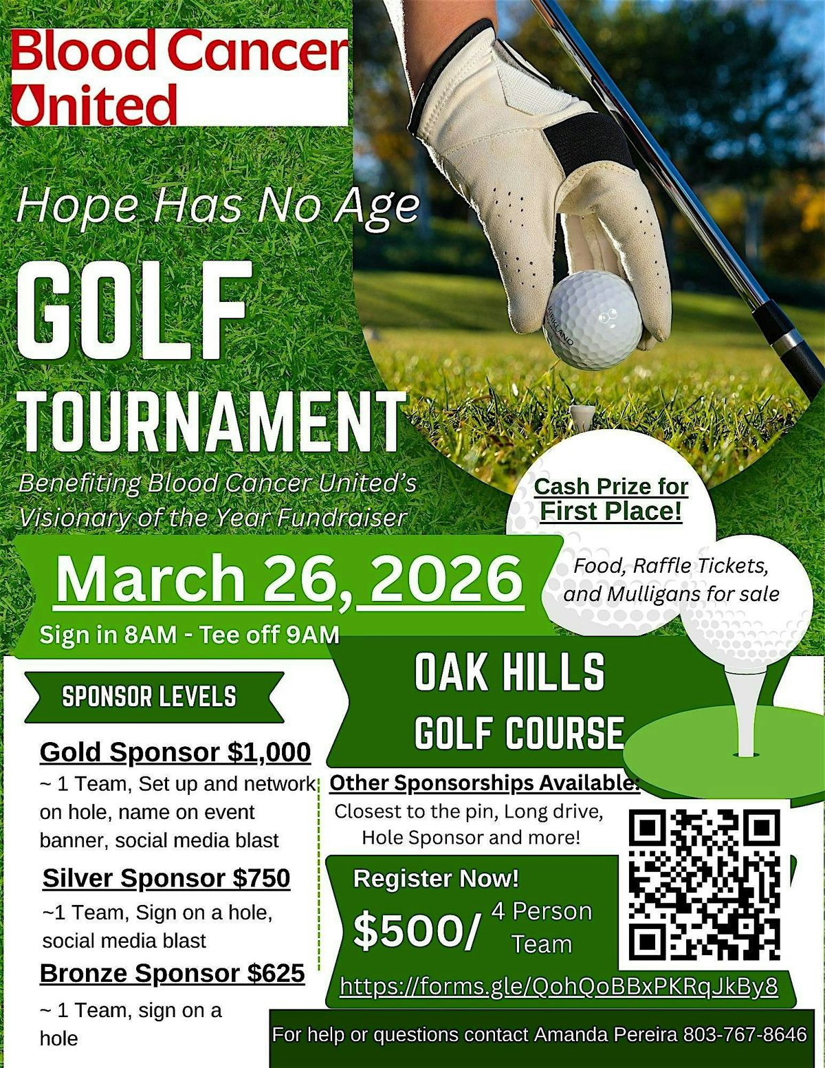 Join us for a fun-filled day at the Hope Has No Age Golf Tournament! This in-person event is all about swinging clubs and raising spirits to support Blood Cancer United. Whether you're a seasoned pro or just out for some fresh air, come make a difference on the greens. It's golf with a great cause – don't miss out!