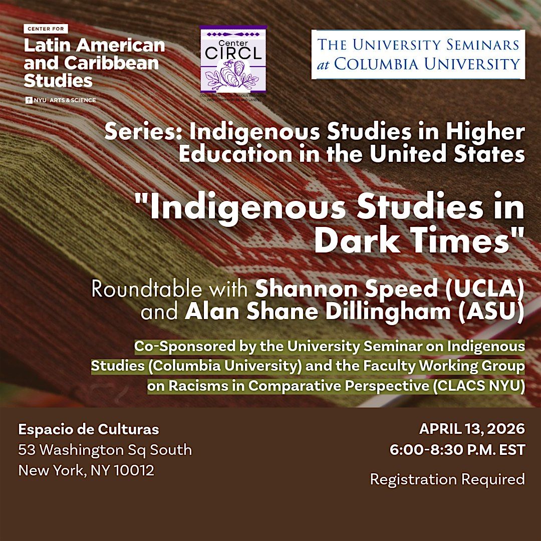 - Co-Sponsored by the University Seminar on Indigenous Studies (Columbia University), the Faculty Working Group on Racisms in Comparative Perspective (CLACS NYU) and the Center for Collaborative Indigenous Research with Communities and Lands (Center CIRCL NYU)
