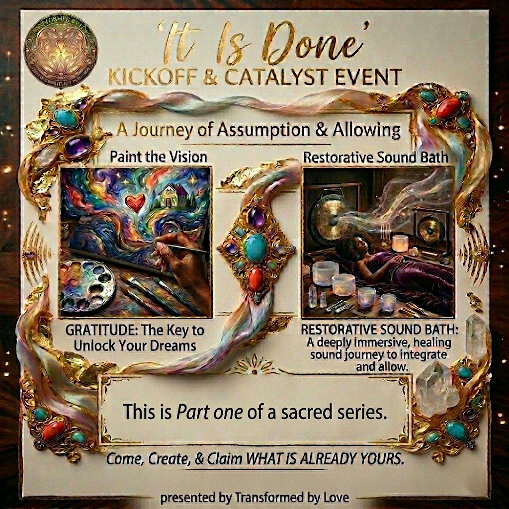 This kickoff event, It Is Done! is a luxe, magical immersion into the Laws of Assumption & Attraction, designed to bridge the gap between where you are and where you are meant to be.