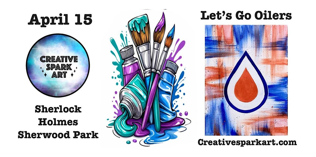 Join us for a fun and creative “Let’s Go Oilers!” Paint & Sip at Sherlock Holmes Pub Sherwood Park. Come paint your favorite hockey team’s logo with a bold orange and blue abstract background, the perfect way to show your Oilers pride!