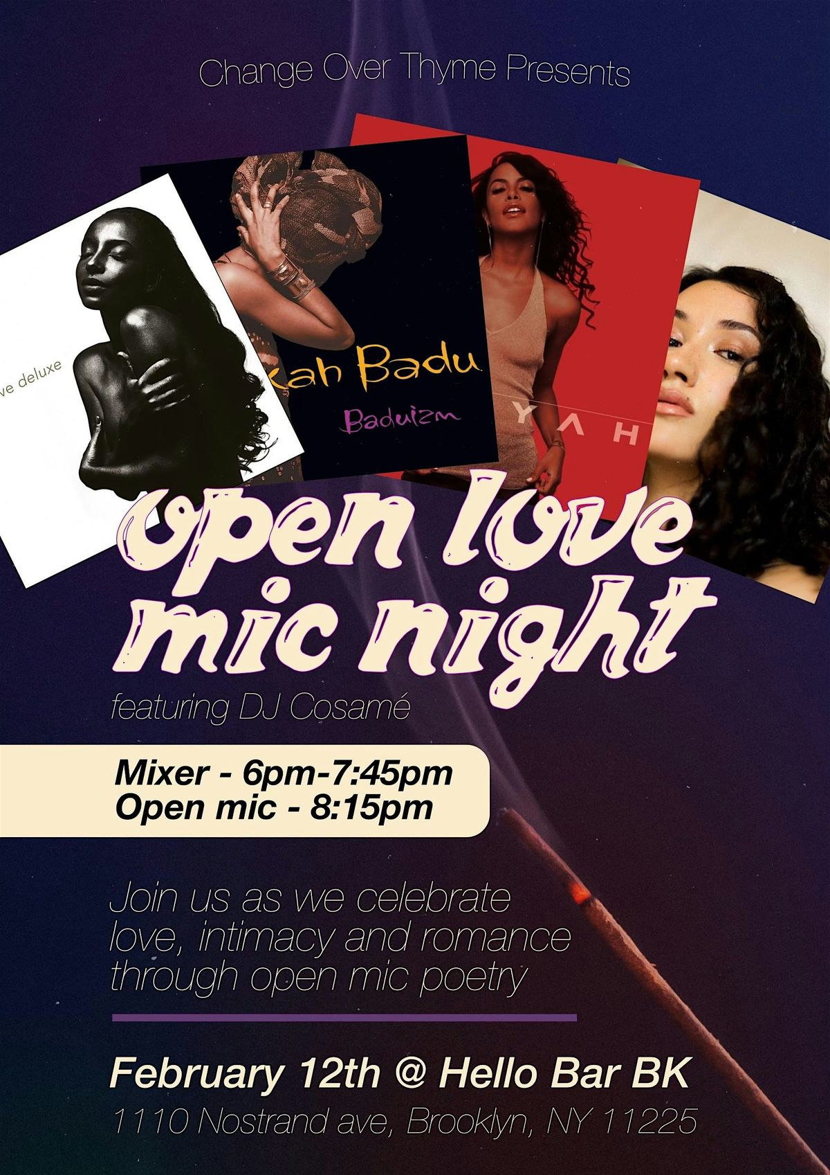 Celebrate love and creativity with us in person at our "LOVE & INTIMACY" OPEN MIC NIGHT. Whether you’re a seasoned poet or just love a heartfelt wordsmith, this is the perfect spot to share and enjoy. Bring your passion and maybe even a poem or two! Let’s make this day a special celebration of emotions, intimacy, and, of course, poetry. Don’t miss out!