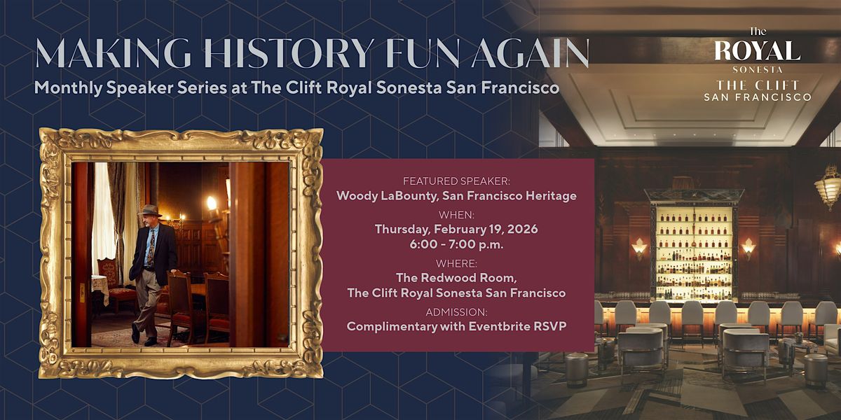 The Clift Royal Sonesta Hotel, a San Francisco landmark since 1915, continues its new monthly speaker series, “Making History Fun Again,” designed to honor the city’s legendary past through lively storytelling and unforgettable personalities.