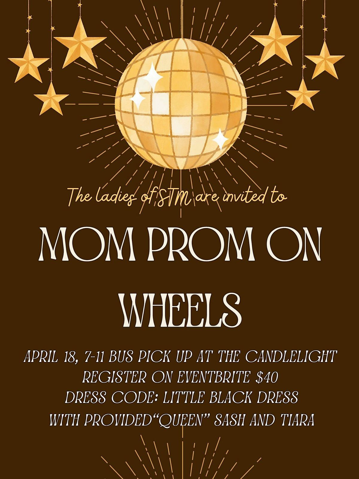 Mom Prom is back with little different spin this year! Gather at the Candlelight in your dress, hop on the bus. Singing & dancing required.
