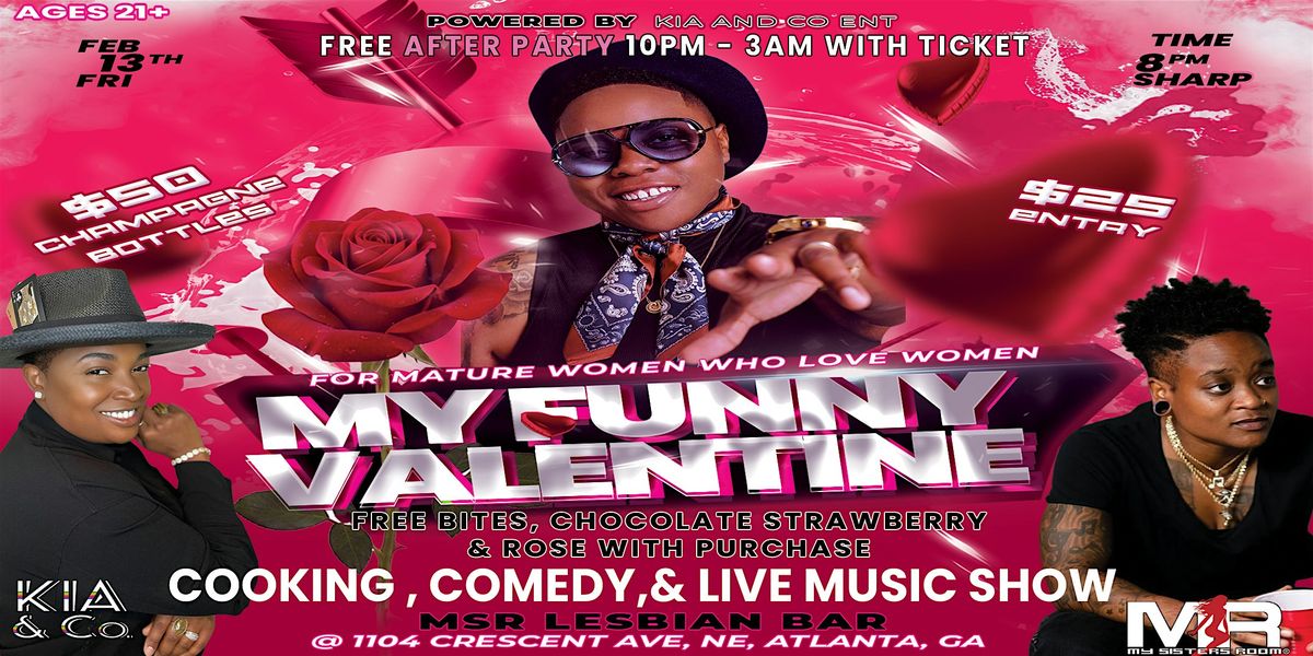 Ladies, we’ve got something sexy in store for YOU this Valentine’s Weekend! Kia and Co. is bringing flavor, soul, and standup to the stage for one night only! Three dynamic talents collide for this cooking, comedy, and live music show! Flava is cooking on stage, with Sha'Ri and Kia each performing live! Entry is only $25, and your ticket includes freshly prepared bites by Flava, a rose, a chocolate covered strawberry, and FREE entry to the After Party! Bring your boo, come with your crew, or even just YOU! This grown and sexy event takes place at the only Lesbian lounge in the Southeast, My Sister’s Room! Come for the show, and stay for the Fem Fridays ATL AFTER PARTY! We have $50 bottles of champagne available for preorder. Meet us in Midtown, where it all goes down this Friday the 13th at MSR!