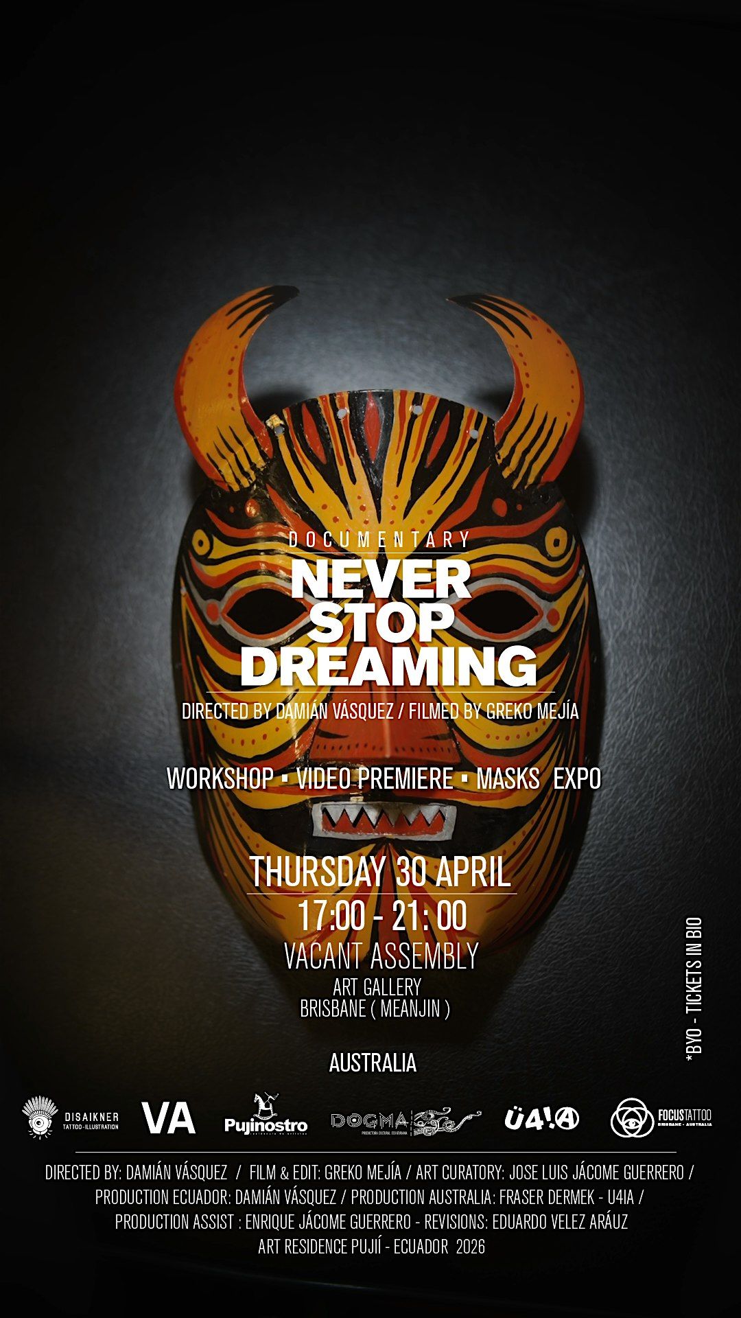 This project started as a residency art program at @pujinostro in the Andean Mountains of Ecuador . An adventure to find and talk to local artisans about their labour. Tigua painters for Damian are a clear example that art can break through anything while make your spirit pump. So, “ Never stop dreaming” is how this journey is baptised, is the documentary name, but also is a big lesson from Julio Toaquiza, ( the first Tigua painter ), never stop dreaming.This thursday 30th at VA will be presented a documentary / investigation about what masks represent in damian´s life and how cultures are being shaped by such important objects that carries identity..