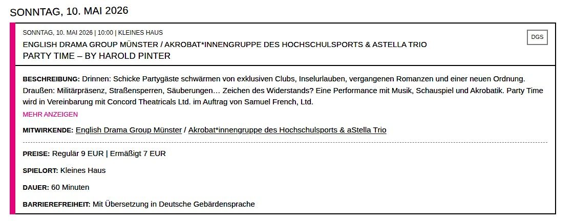 ⚠️ NO RESERVATIONS ON THIS PAGE. Please purchase tickets via the Theater Münster Box Office or at the door.
