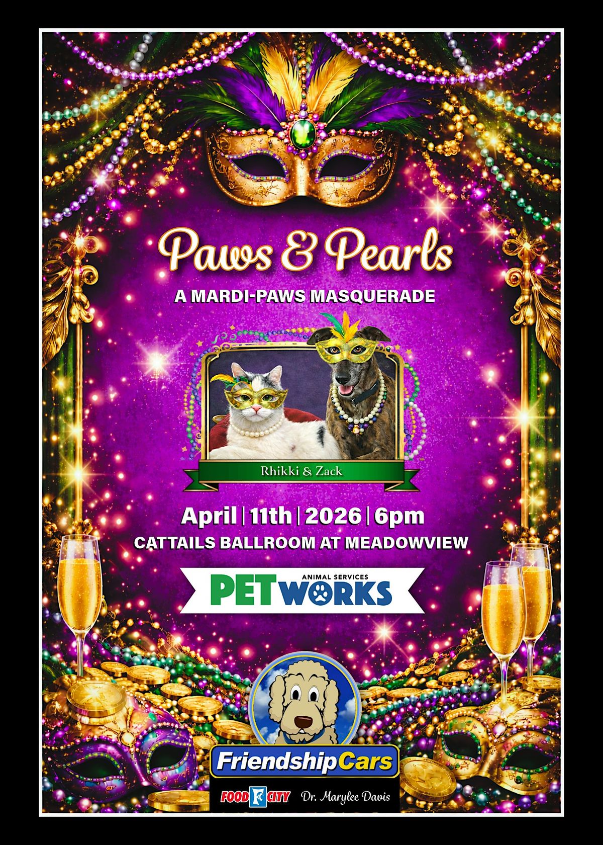 Join us for the Petworks 2026 Fur Ball – “Paws & Pearls” on Saturday, April 11, 2026, 6 PM at the MeadowView Convention Center in the beautiful Cattails Ballroom.