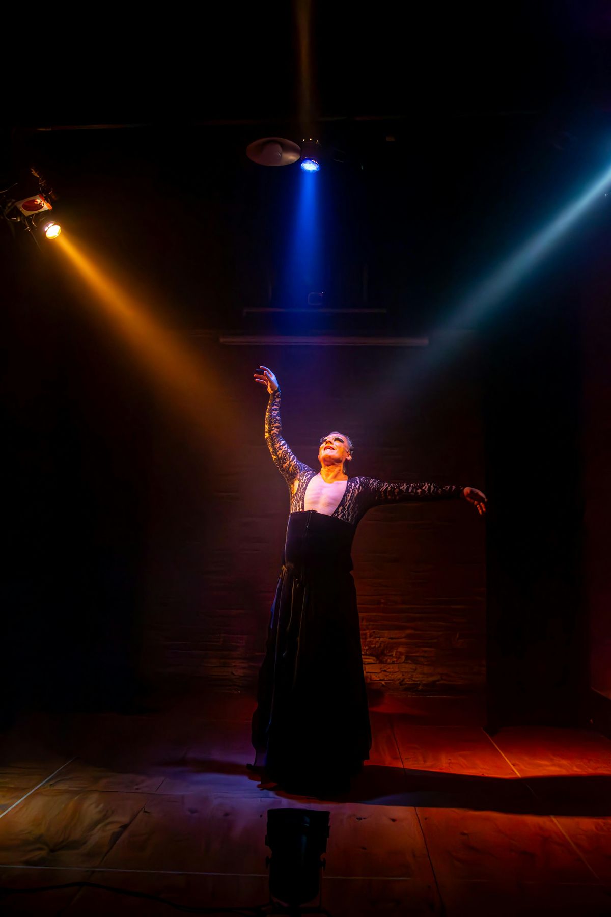 Piel de encaje recorre algunas memorias vinculadas con el amor, el amor romántico apasionado y trascendental como narran los tangos que ella canta a lo largo de la obra. Ella compone a una drag tanguera.