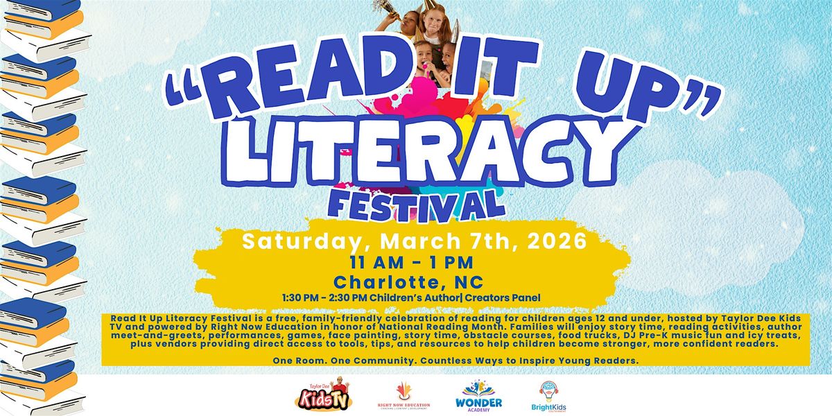 Read It Up Literacy Festival is a free, family-friendly celebration of reading for children ages 12 and under, hosted by Taylor Dee Kids TV and powered by Right Now Education in honor of National Reading Month.