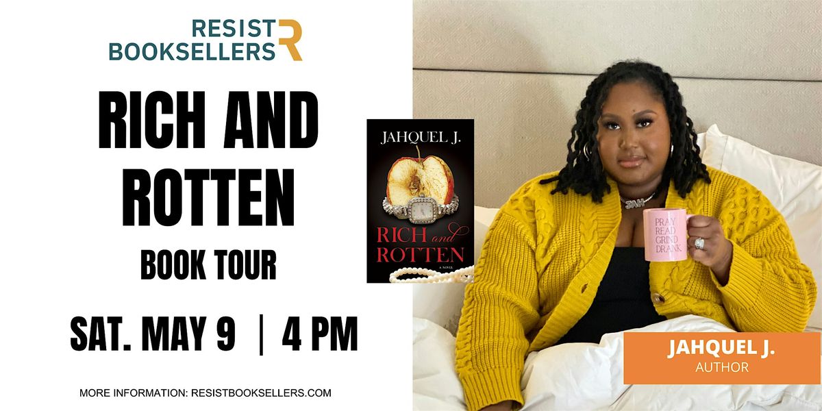 Calling all romance lovers! Join us for the Rich and Rotten Book Chat with Jahquel J. at Resist Booksellers on Saturday, May 9, 2026 at 4:00 PM (Eastern Time) in conversation with Jasmine Hardy, founder of the Melanin Uncorked Book Club.