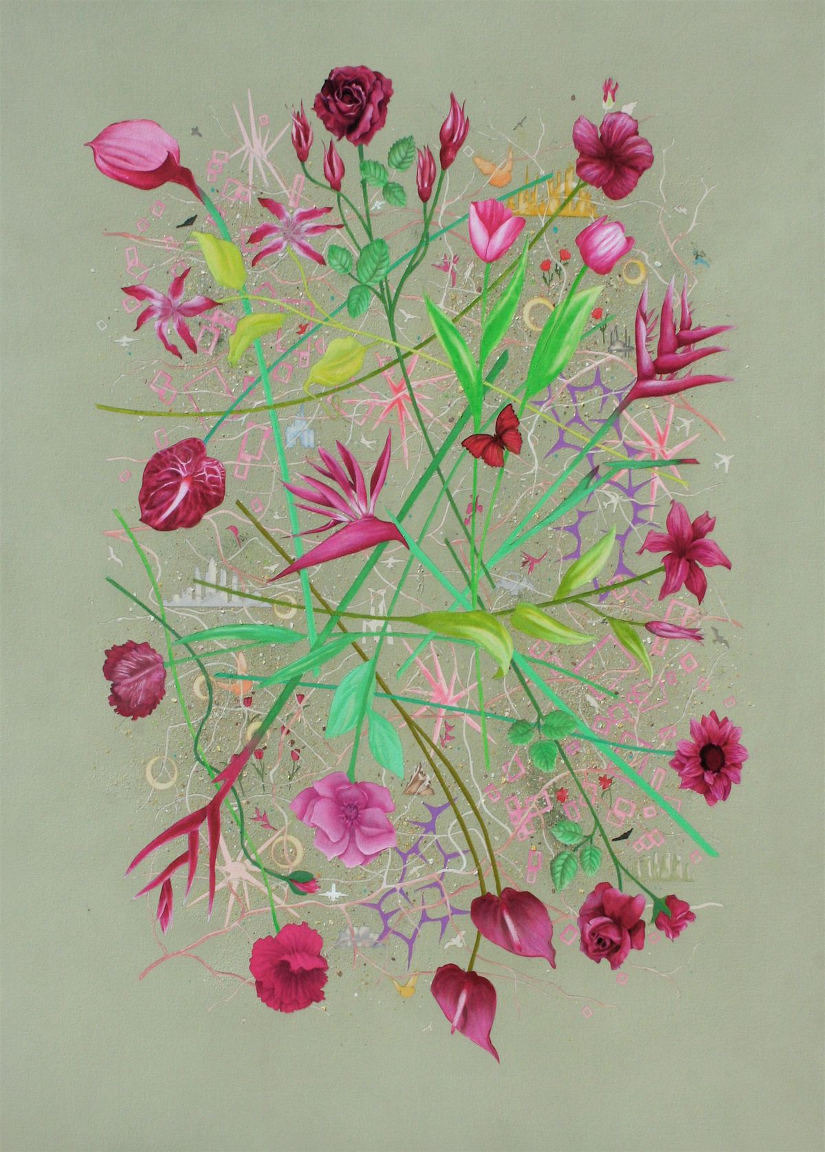 About these paintings Reiss stated, “Flowers are the vehicle for putting everything I have learned about painting into my work.” The resulting paintings move fluidly between abstraction and figuration, combining bold color, gestural energy, and spatial complexity. Rather than depicting flowers, Reiss uses them as a framework for exploring perception, materiality, and the enduring power of visual experience.