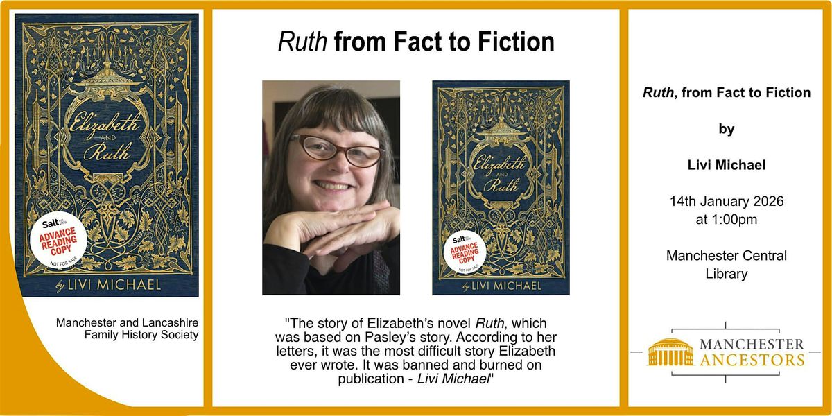 Ruth from Fact to FictionManchester 1849. Elizabeth Gaskell, newly famous author of Mary Barton, visits a young prostitute in Manchester’s New Bailey Pr*son. The girl, known to us only as Pasley, had been abandoned in an orphanage in Dublin as a young child, apprenticed out in Manchester, raped at the age of fourteen, and had ended up on the streets. Elizabeth tried to help her, but few people in Victorian England would employ an ex-prostitute from Pr*son. In desperation, Elizabeth wrote to Charles Dickens for help.My novel, Elizabeth and Ruth is based on the correspondence between Elizabeth Gaskell and Charles Dickens about this young girl. It tells her story, and the story of Elizabeth’s novel Ruth, which was based on Pasley’s story. According to her letters, it was the most difficult story Elizabeth ever wrote. It was banned and burned on publication.Yet it differs significantly from Pasley’s story and this lecture will investigate those differences, considering why Ruth, which was so controversial at the time, seems less so now. I will be looking particularly at the setting, the language and the gender politics of the novel, paying tribute to the fact that it is the first novel in English to feature a ‘fallen woman’ as heroine, while acknowledging all the things Elizabeth Gaskell was unable to say."