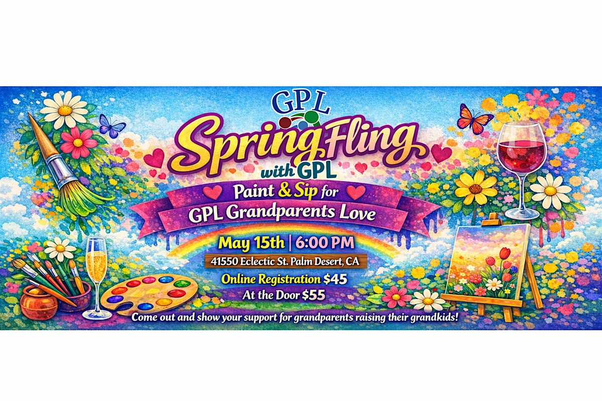Spring Fling with GPL – Grandparents Love Get ready for a colorful, joy‑filled evening at 41550 Eclectic St on May 15, 2026 at 6 PM! Join us for a relaxed Paint & Sip where families, friends, and supporters come together to celebrate spring, creativity, and community. Expect good vibes, laughter, guided painting, and a welcoming atmosphere that lifts everyone’s spirits. Don’t miss this chance to unwind, connect, and support grandparents raising their grandkids — it’s going to be a beautiful night!