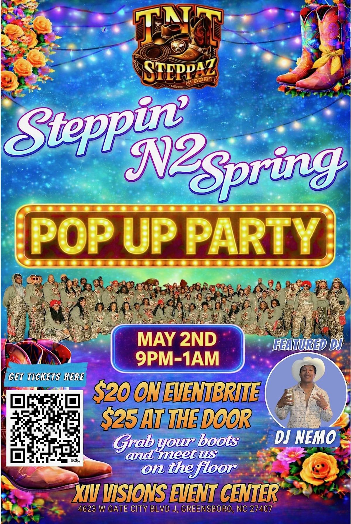 Get ready to slide! Join TNT Steppaz for the Steppin N2 Spring Pop Up! Experience epic vibes, non-stop energy, and some of the smoothest moves around as we welcome the new season on May 2nd at XIV Visions Event Center. DJ Nemo will be holding it down all night, keeping the floor hot. This is the event of the spring, and missing it means missing out on unforgettable memories.