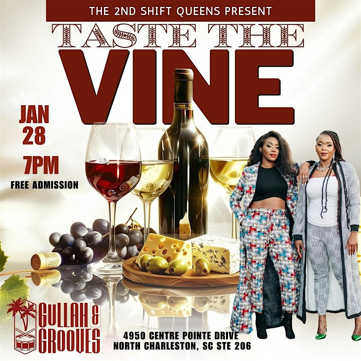 #2ndShiftQueens #TasteTheVine #WineWithFriends #AmateurWineTasting #SecondShiftVibes #GullahAndGrooves #FreeEventCharleston