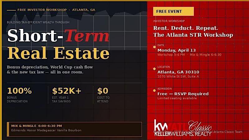 Atlanta real estate, done right. STR income, bonus depreciation, and World Cup-driven cash flow for smart investors.