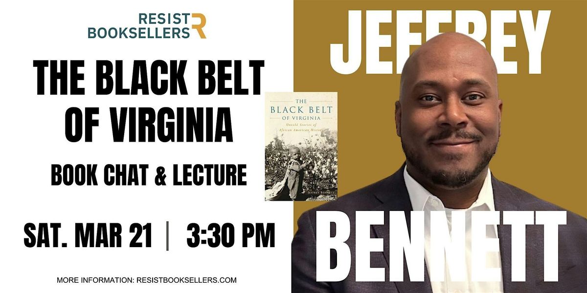 Calling all history lovers! Join us for a book lecture on The Black Belt of Virginia with Jeffrey Bennett at Resist Booksellers on Saturday, March 21, 2026 at 3:30 PM (Eastern Time).