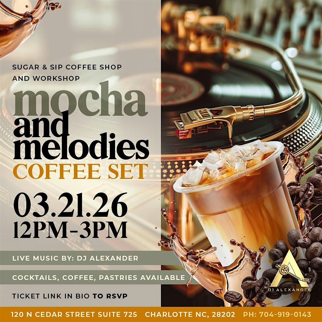 Mocha & Melodies ☕ 3/21 12–3PM at Sugar & Sip. Espresso, cocktails & soulful sounds. Day party energy, curated vibe.