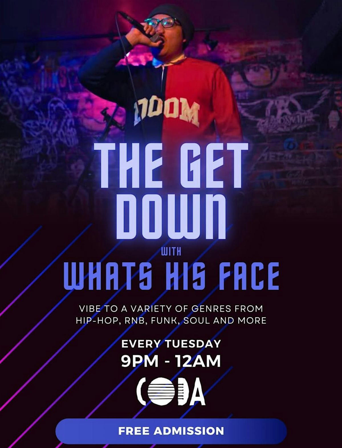 It’s The Get Down! Come vibe and imbibe while Whats His Face spins a variety of Hip-Hop, RnB, Funk, Soul and more every Tuesday at Coda!