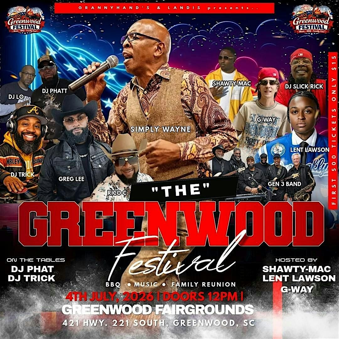 Join us at the Greenwood County Fairgrounds on July 4, 2026 at 12:00 PM (Eastern Time) for a day full of fun, music, and great vibes. Whether you're coming with friends or family, there’s something for everyone to enjoy. Grab your lawnchairs and come enjoy the fun. Live music, food trucks, games and fun! Don’t miss out on this awesome community event where good times and good people come together! First 500 tickets only $15! Get your family pack ticket, comes with 8 tickets and a table in a reserve area. This is one show you don't want to miss!