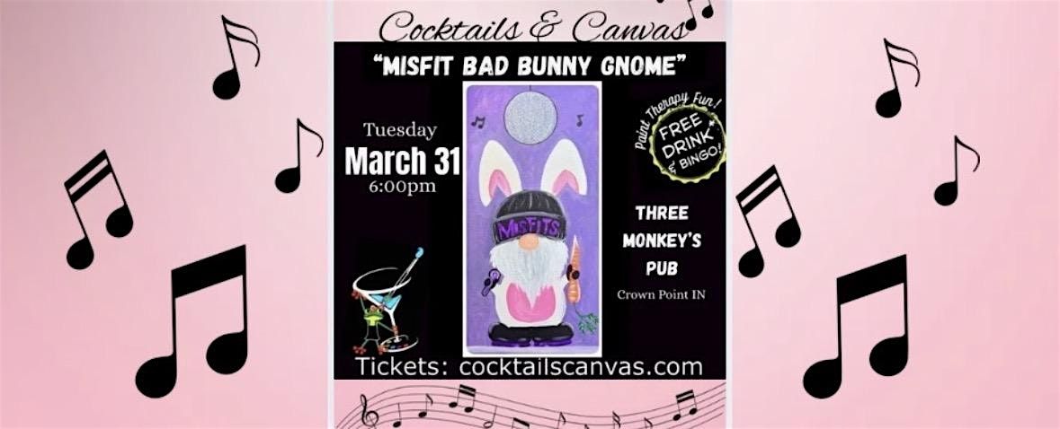 Get ready for a super fun Cocktails & Canvas Paint & Sip night! Join us in person to unleash your creativity while sipping on your *FREE complimentary drink. We will be using a stencil start to make painting this a breeze so whether you're a painting pro or just want to have a blast, this event is perfect for a chill night out. Bring your vibe and let's make some colorful memories with the quirky Bad Bunny Gnome!