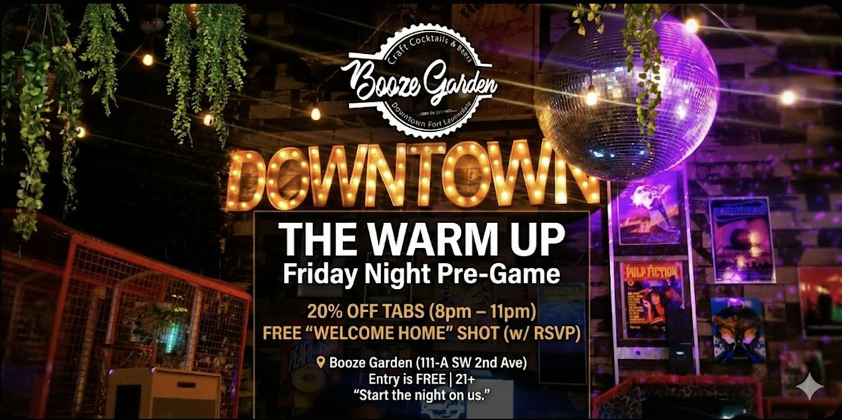 Skip the overpriced drinks and start your Friday night the smart way. Booze Garden is hosting Fort Lauderdale's official Friday Pre-Game. We are keeping the vibes high and the prices low until the late-night rush hits.